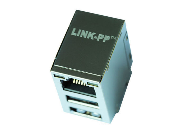 | RJ45 Magjack con 10/100/1000 Magnetics integrado de la base-T con USB dual, Orange&Green/Yellow LED, etiqueta para arriba, RoHS | |